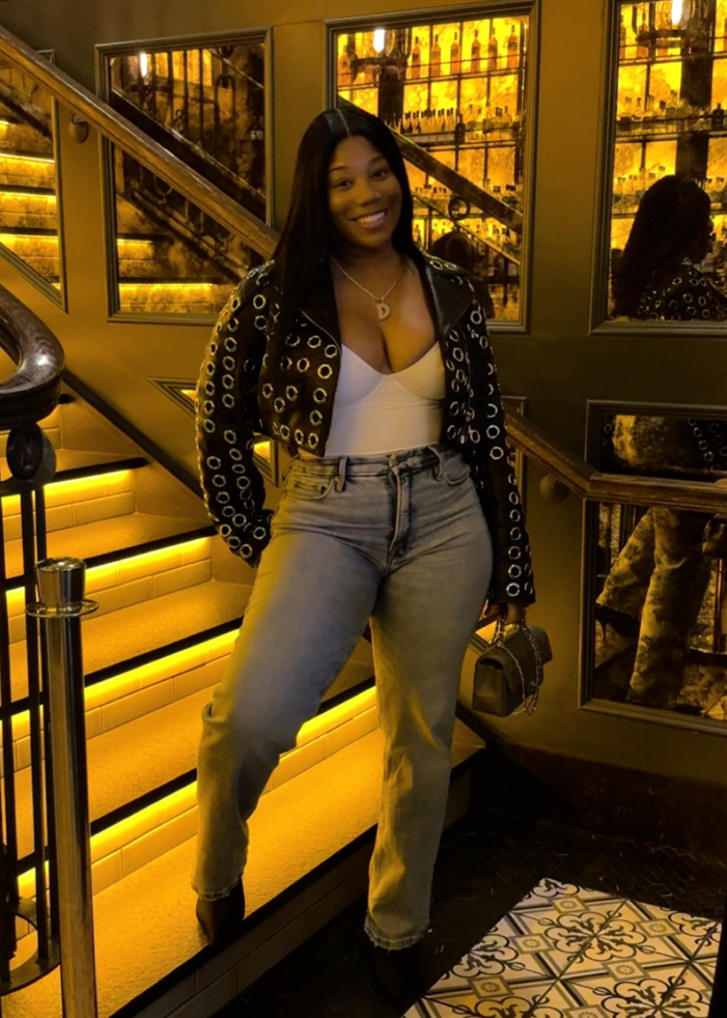 100% Genuine Leather | Lining Composition: 100% Polyester | Made to Order | Heavyweight | Danni wears a 5XL. We will contact you after purchasing to ensure sizing is accurate before production starts.